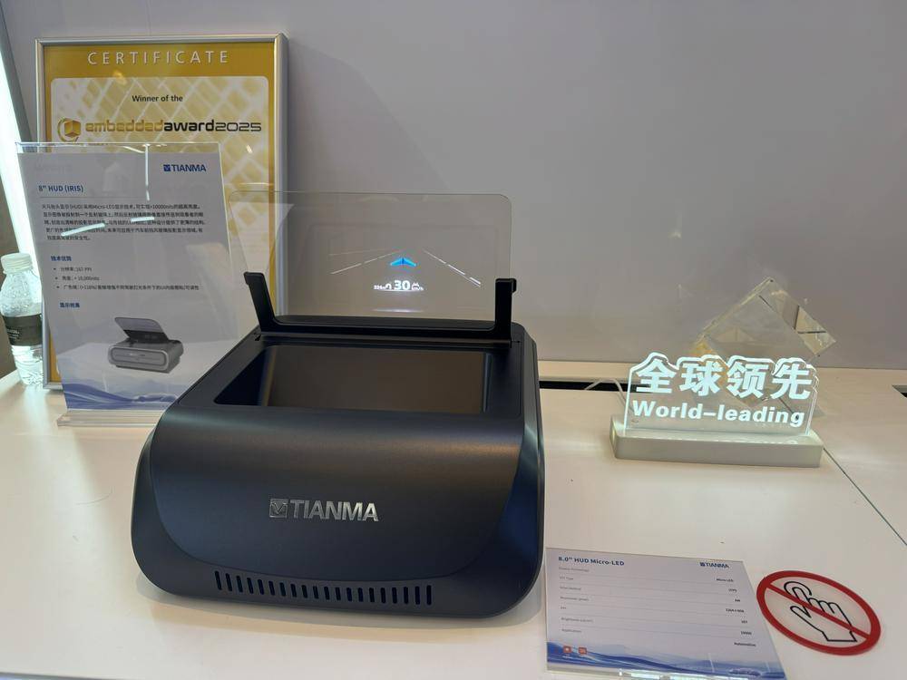 (深天馬A展出的MicroLED HUD 財(cái)聯(lián)社記者攝)