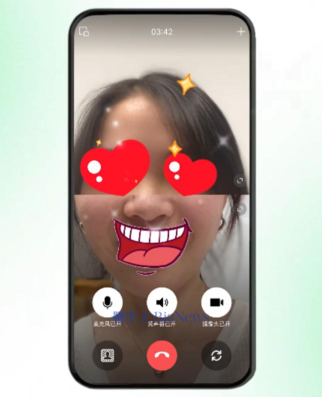 長按視頻通話小窗口拖到屏幕上方就能實現分屏,不再是大小屏組合界面,而是上下屏幕一樣大。