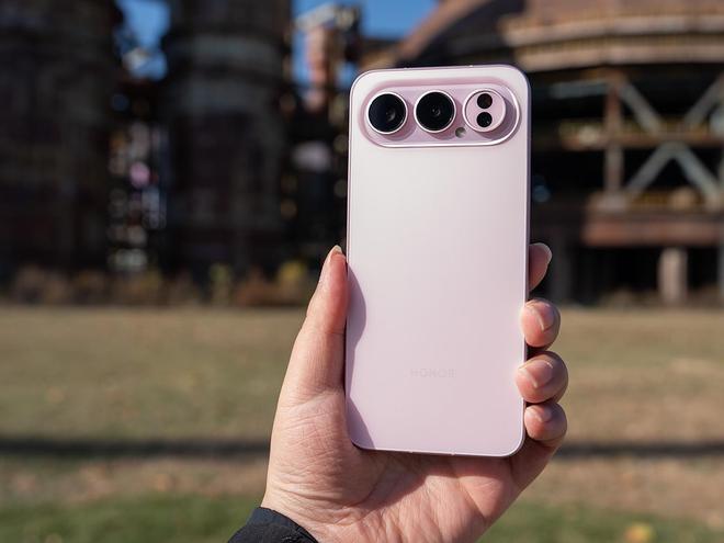 榮耀500 Pro采用了直屏設計風格,背部采用了一整塊玻璃冷雕加工一體成型。鏡頭Deco與機身之間通過火山口進行曲線過渡,整個機身渾然天成,毫無割裂感。