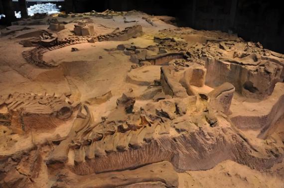 經(jīng)自貢恐龍博物館、中國(guó)地質(zhì)大學(xué)等機(jī)構(gòu)聯(lián)合研究,這批化石共有8塊石板,上面密布著413個(gè)獸腳類恐龍足跡與尾跡,距今約1.9億至1.8億年。